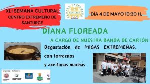 13:00h- Diana floreada a cargo de nuestra banda de cartón, y animando toda la zona de nuestro Centro Extremeño.