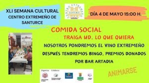 15:00h – Comida social traiga usted lo que quiera con vino Extremeño. Después de comer sorpresa para tod@a. Es muy importante la confraternización entre l@s soci@s.